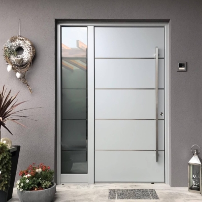 Naša aluminijasta vrata so estetsko zasnovana, saj jih odlikujeta smisel za detajle in unikatna obdelava, ki je v veliki meri plod natančnosti in doslednega ročnega dela. Z razlogom veljajo za najboljša vhodna vrata, ki s svojim estetskim pečatom zaznamujejo vsako stanovanje, hišo ali poslovno stavbo ter jim dodajo izjemen končni videz.