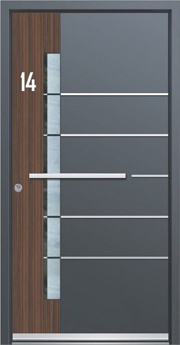 I numeri civici sono realizzati in acciaio inossidabile spesso 1 mm. Vengono forniti di serie, quindi i numeri sono allineati con la superficie della porta per una pulizia più semplice e un aspetto più elegante. Possono avere una finitura opaca o lucida. L'altezza del numero standard è di 105 mm. I numeri vengono creati nel carattere AGENCY FB. Altre dimensioni e forme su richiesta.