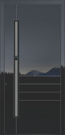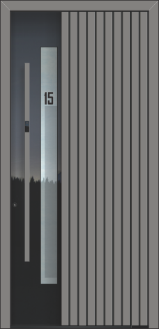 Le superfici della porta d'ingresso in alluminio sono protette da una verniciatura a polvere di alta qualità. La verniciatura a polvere offre resistenza eccezionale in tutte le condizioni meteorologiche, manutenzione semplice, stabilità dei colori a lunga durata e vita utile molto lunga.